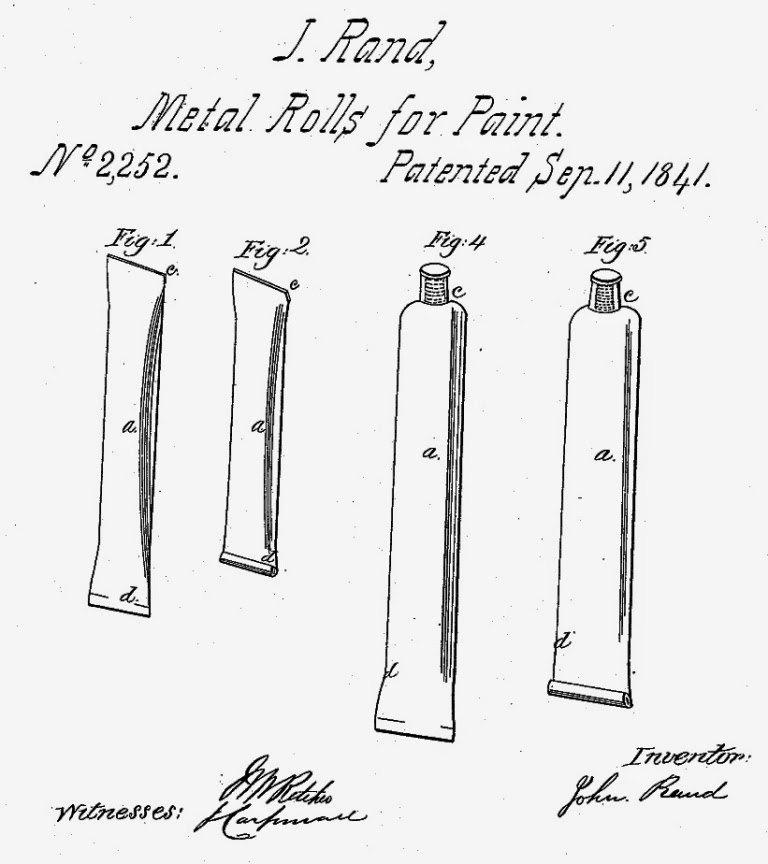Пока Рэнд дорабатывал свое изобретение, Вильям Винсорзапатентовал тубу с носиком для выдавливания краски, имеющим резьбу и закручивающуюся крышку.